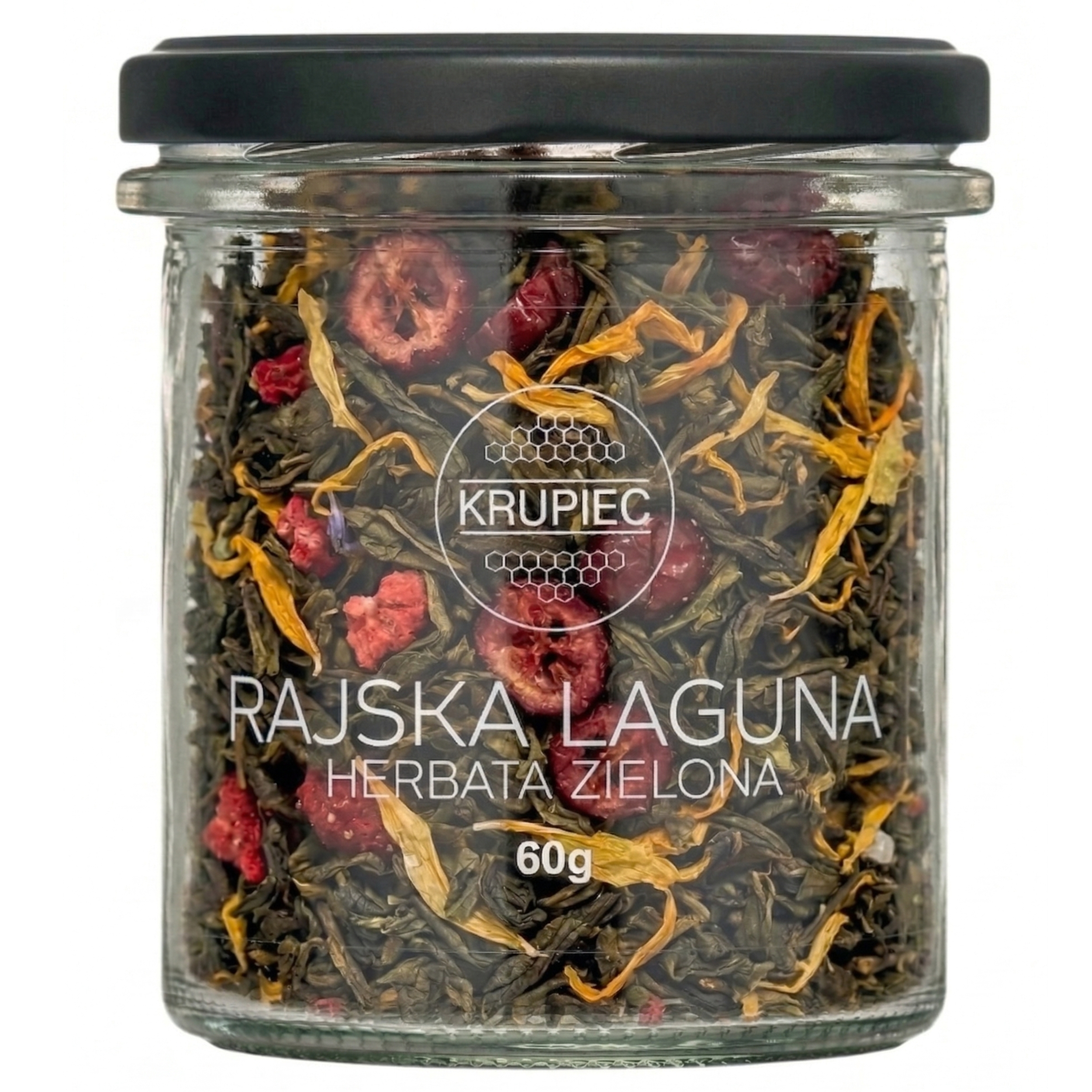 Herbata Zielona Rajska Laguna - Ekskluzywna Mieszanka Sencha z Owocami w Eleganckim Słoiczku