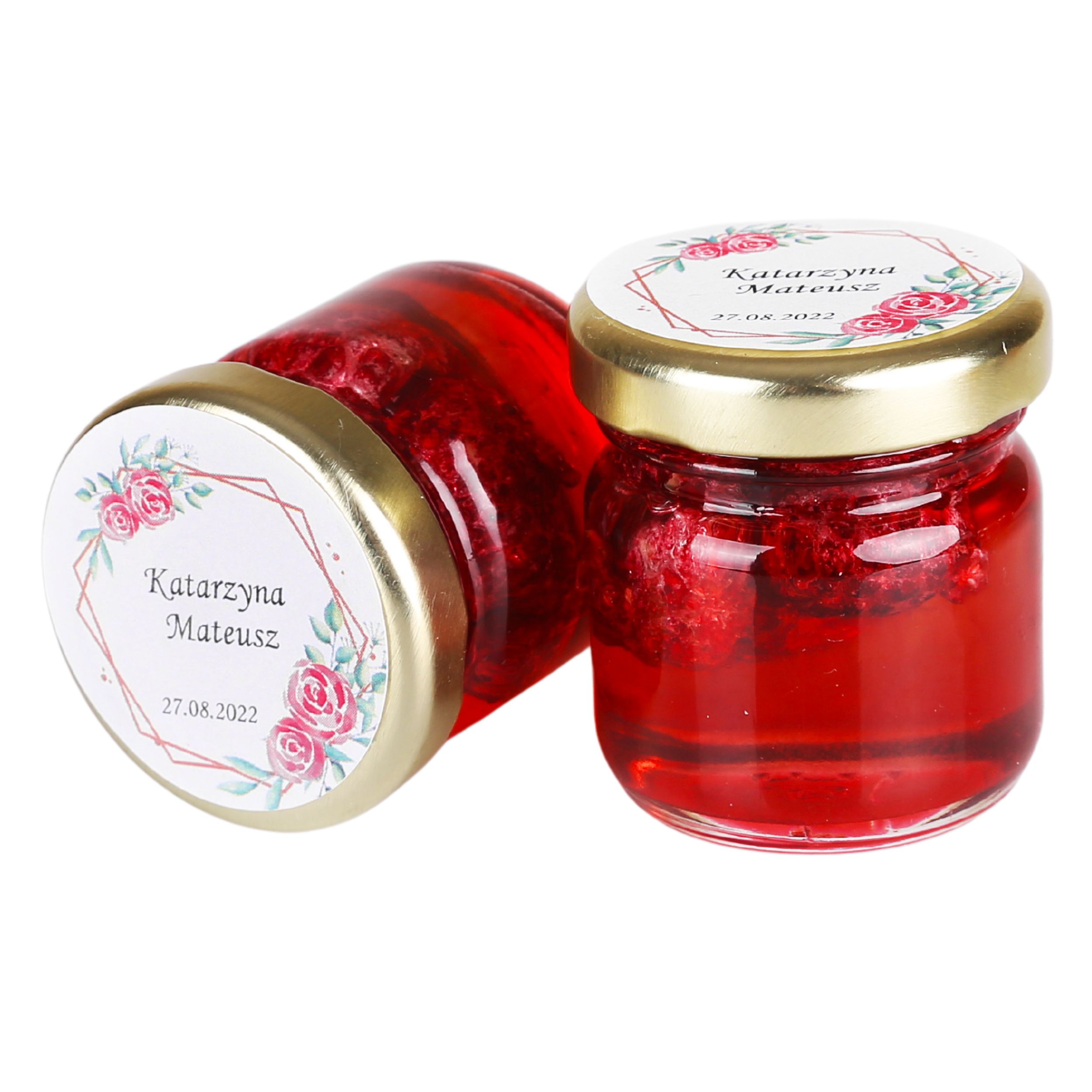 Miodziki weselne to idealny wybór na pamiątkę dla gości. Maliny ze specjalną grafiką umieszczone w niewielkim słoiczku, który opatrzony jest opisem i grafiką wybraną przez Klienta, na pewno zaskoczy bliską osobę. Smakowity prezent można użyć zarówno do owsianki, jak i ciepłych napojów. Będzie także obłędnie smakował z jogurtem naturalnym lub domowymi wypiekami. Doskonała kremowa konsystencja zaskoczy każdego, kto otrzyma taki miodzik.